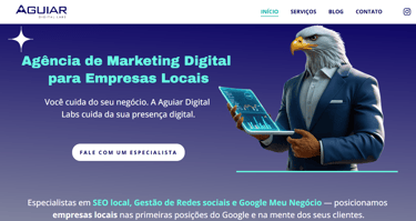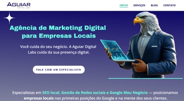 A Aguiar Digital Labs cuida de tudo: da Criação do Site ao crescimento com Google, SEO, Redes Sociais e Tráfego Pago, com foco em performance e resultados reais.